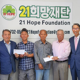 “21희망재단(이사장 김준택) 어려운 이웃3명에게 지원금 2,100달러전달”